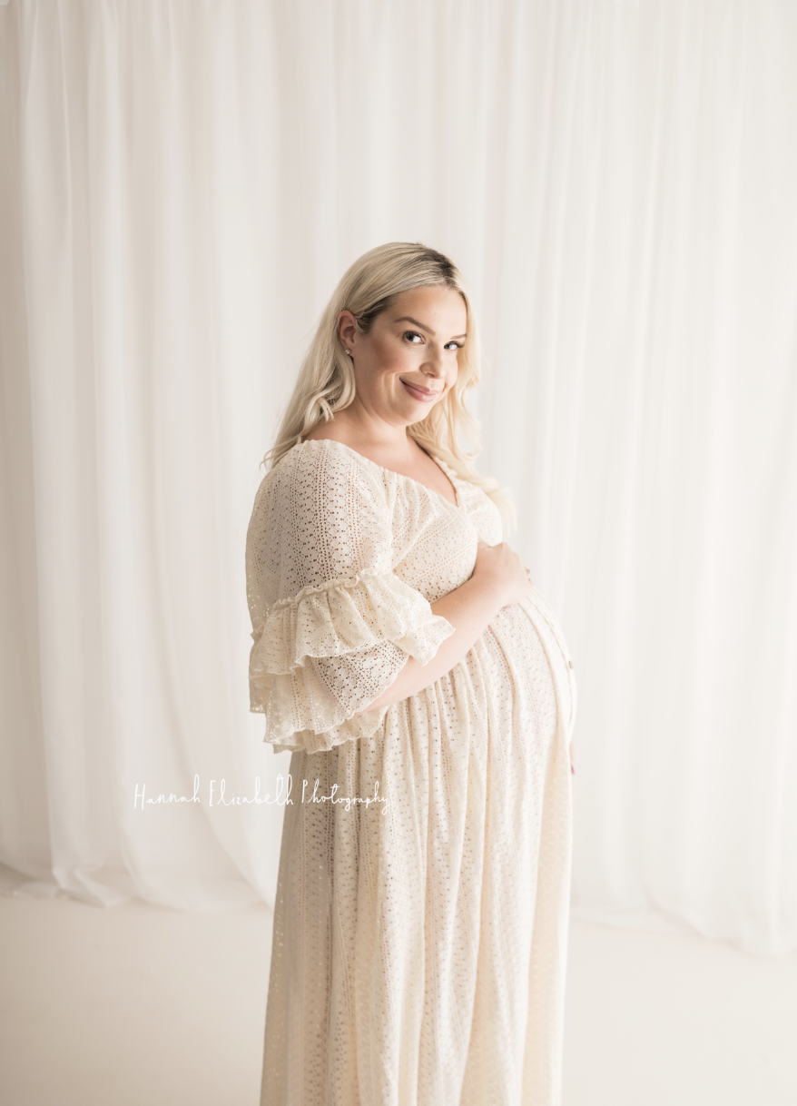 A maternity portrait session can take place either in our inviting studio or in the beautiful outdoors.